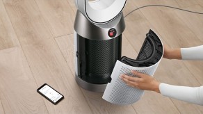 Замена HEPA-фильтра и фильтра с активированным углем выполняется быстро и легко. ЖК-дисплей пылесоса и приложение MyDyson уведомляют о необходимости замены.