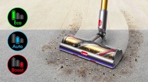 Беспроводной пылесос Dyson с 7 насадками предназначен для уборки любых поверхностей. Лимитированная коллекция в золотом исполнении подойдет для любого интерьера. В комплекте есть док-станция, на которую крепится девайс для хранения и зарядки. Можно приобрести дополнительные аккумуляторы, чтобы увеличить время уборки.