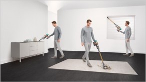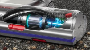 Пылесос Dyson V15 с лазерным лучом подсвечивает мельчайшую пыль, которую не видно невооруженным взглядом. Он борется с любыми загрязнениями на полу, стенах, в щелях, ворсе ковра. Информативный ЖК-дисплей передает информацию о работе в реальном времени. В комплекте есть настенная Док-станция, которая служит для хранения и зарядки.