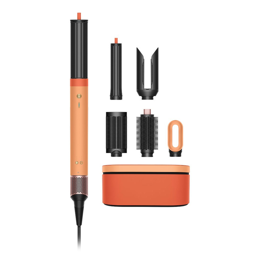 Этот стайлер создает безупречно ровные пряди и любые локоны. Его удобная насадка разглаживает волосы лишь сильным воздушным потоком, поэтому им не страшны перегрев и заломы. Устройство запоминает ваши любимые режимы для быстрой укладки. Все необходимое есть в комплекте: насадки для завивки, сушки и объема. Стайлер имеет стильный глубокий абрикосовый цвет, а также компактный чехол, который надежно хранит все насадки и идеален для путешествий.